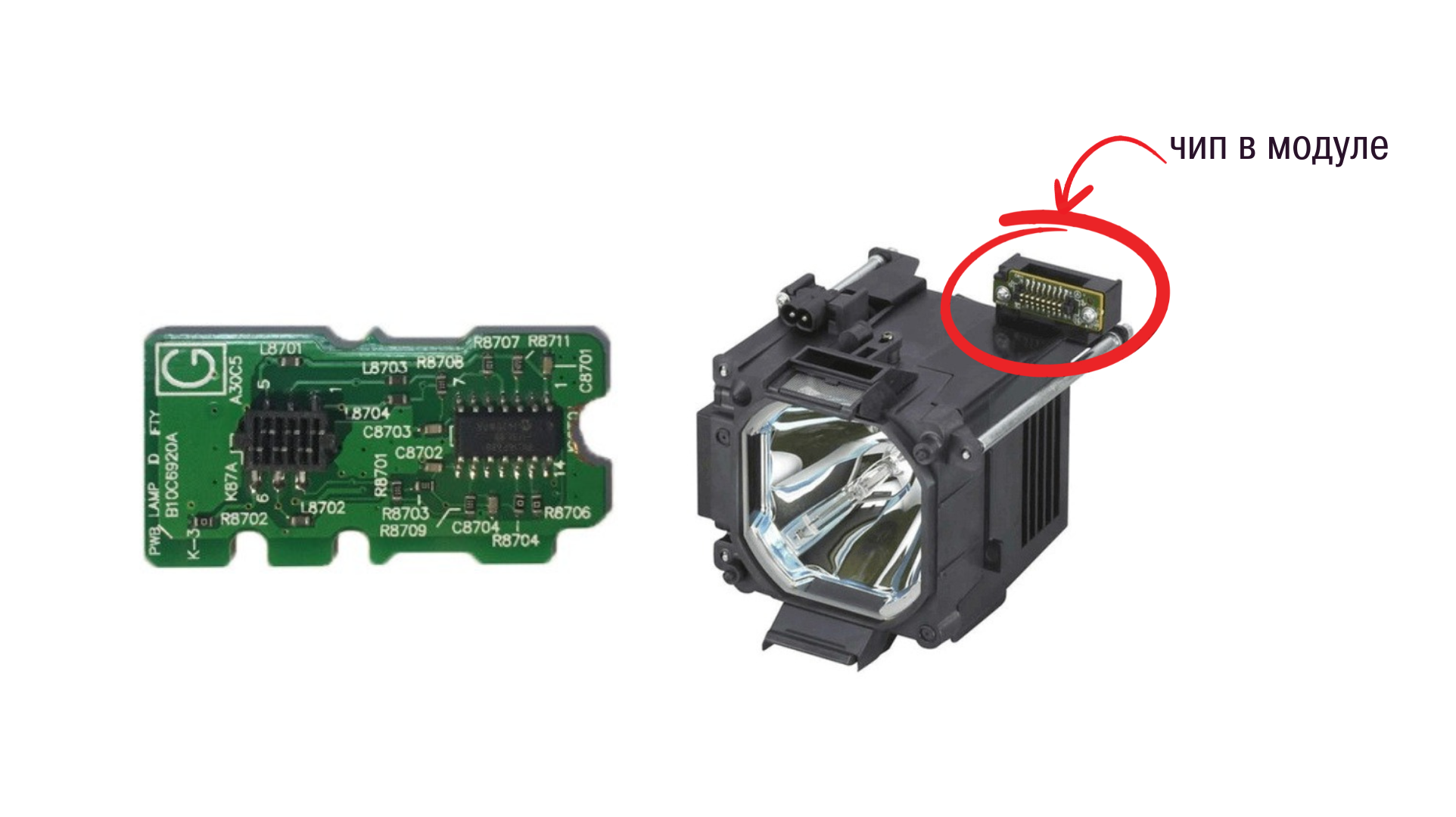 Факт: не всегда, модуль – это просто пластиковый корпус, в котором установлена лампа. В большинстве случаев достаточно заменить только саму лампу. Однако есть исключения: если модуль оснащен чипом (микросхемой), то замена лампы без модуля может привести к сбоям в работе проектора.