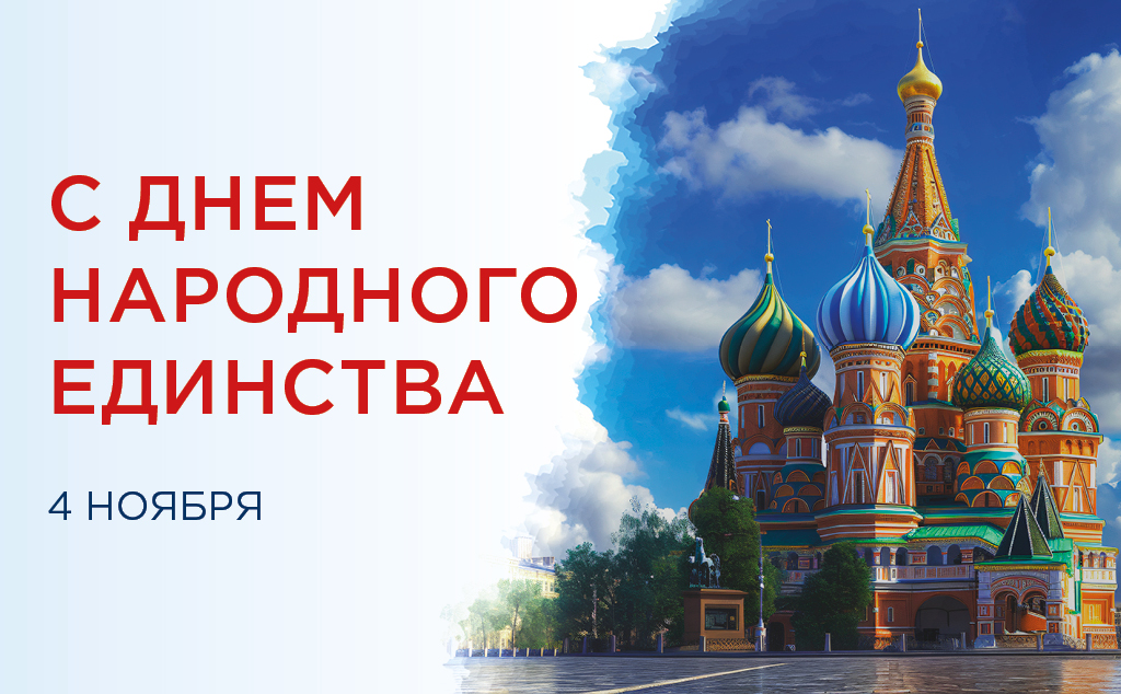 Дорогие друзья! Поздравляем вас с Днём народного единства! Пусть этот праздник объединяет нас в стремлении к добру, справедливости и процветанию. Желаем каждому тепла, любви и благополучия. Пусть единство помогает преодолевать преграды, а доброта и взаимопонимание делают нашу жизнь светлее и радостнее!