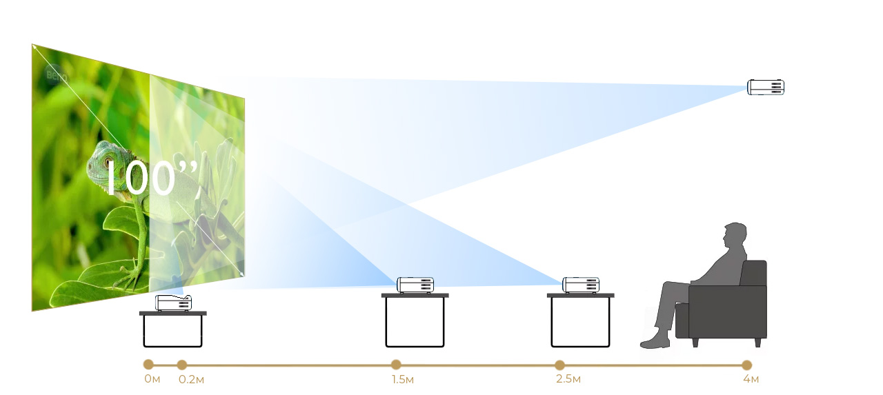 Если вы хотите максимально эффективно использовать свет – не спешите выбирать проектор только по цифре «лм». Посмотрите на фокусное расстояние объектива – оно указано в технических характеристиках.