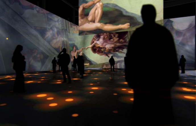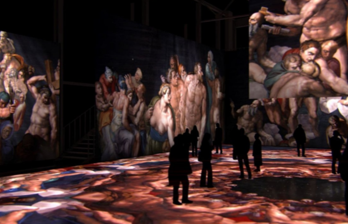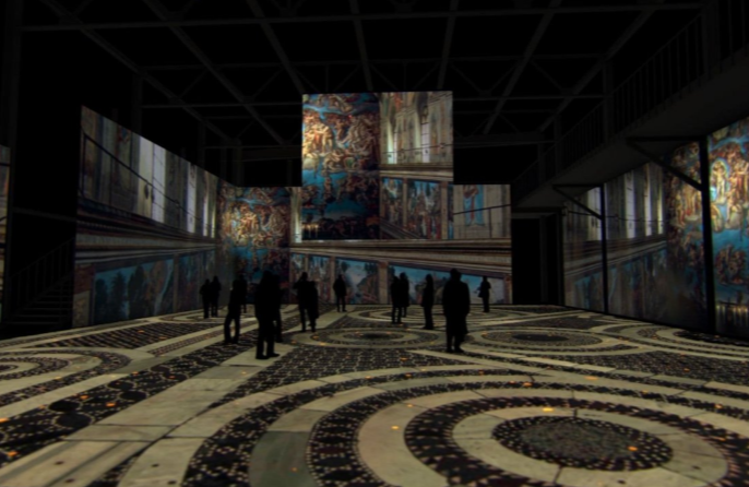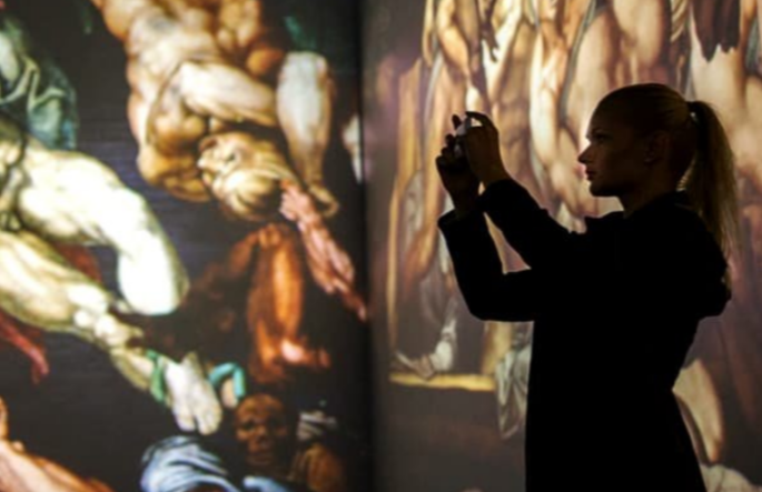 Известно, что все работы по росписи Сикстинской капеллы мастер выполнял лично, привлекая помощников лишь для приготовления красок и нанесения первоначальных слоёв штукатурки. На протяжении четырех лет он трудился на строительных лесах в неудобных позах, что негативно сказалось на его здоровье. В то же время, сочетание света, ярких визуальных эффектов и музыки превращает выставку в эмоциональное зрелище, раскрывающее мельчайшие детали фресок. В самой капелле невозможно рассмотреть каждую мелочь, однако экспозиция показывает известные сцены с новых сторон и с неожиданных, близких ракурсов.